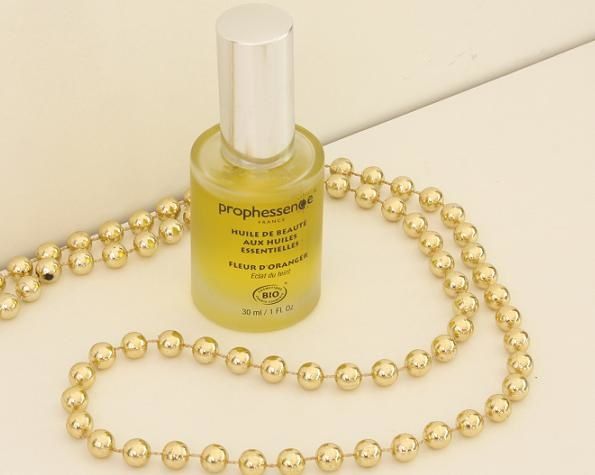 Ma maman a testé, et beaucoup aimé, l'huile de beauté à la rose, la première des deux préparations Prophessence. J'ai testé la seconde, à la fleur d'oranger.